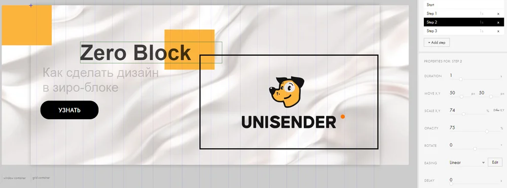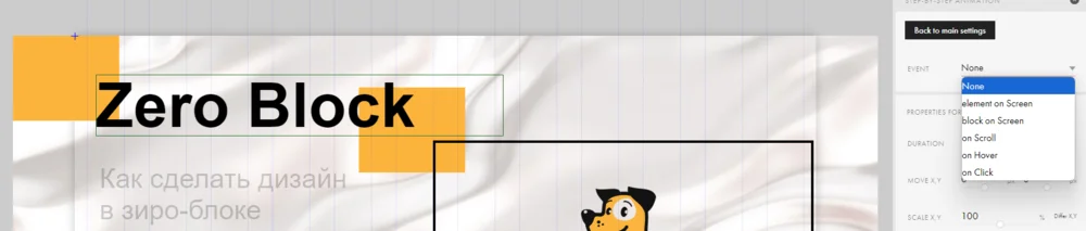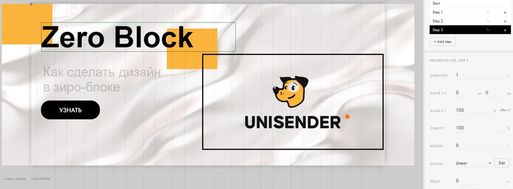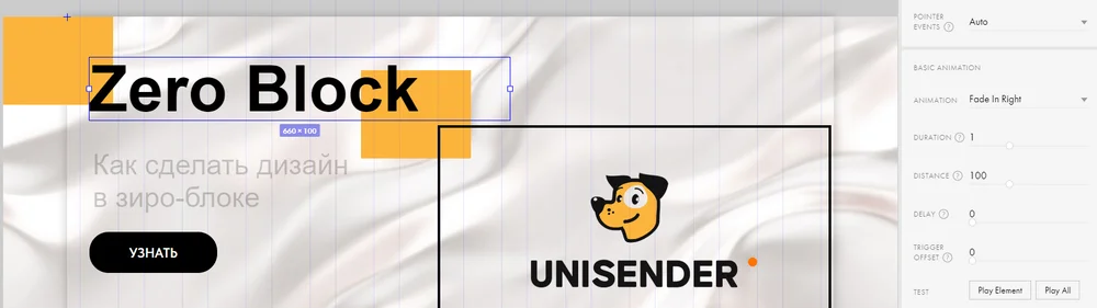 Мы разберем все возможные виды анимации в конструкторе, чтобы добавлять эффекты движения для текста, кнопок, картинок и других элементов.