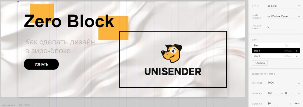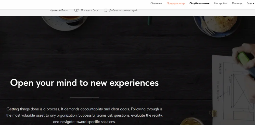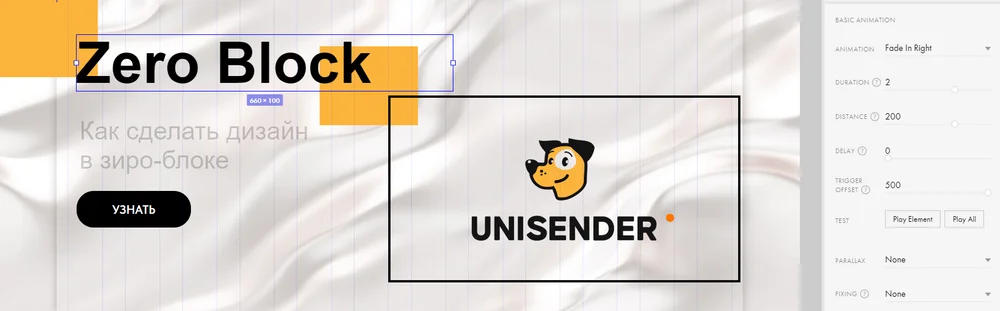 Возможности анимации в Tilda довольно широкие. Если вы собираете сайт в стандартных блоках, по шаблонам, будут доступны готовые эффекты — их можно задать в пару кликов. В zero-блоках, заточенных под кастомные решения, есть более гибкие настройки, они позволят в точности реализовать любую задумку.