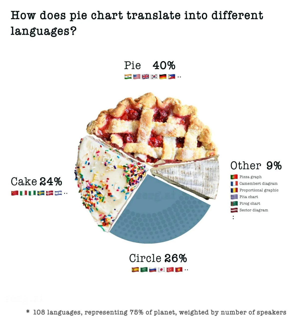 Из-за сложной формы кусочков «пирога» трудно сравнивать значения на глаз: разница между 70% и 30% будет очевидна, а между 53% и 47% — не совсем. Также в круг нельзя уместить слишком много значений — иначе доли получатся слишком тонкими, их будет совсем трудно различать, плюс будет мало места для подписей.