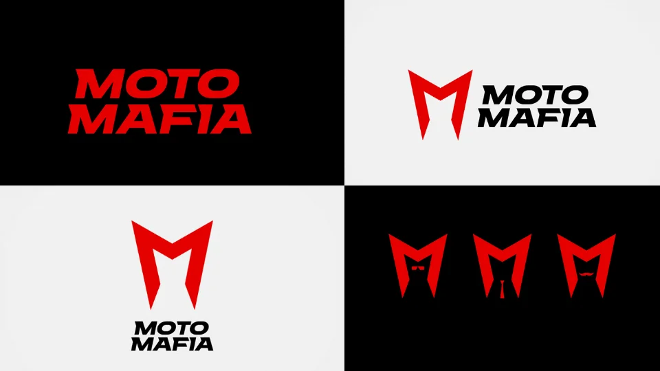 Некоторые компании создают уникальные шрифтовые композиции, чтобы подчеркнуть индивидуальность. Например, Motomafia оформила название шрифтом, который отсылает к байкерской культуре. Буква «М» напоминает силуэт мотоцикла, мотошлем и кота — маскота бренда.