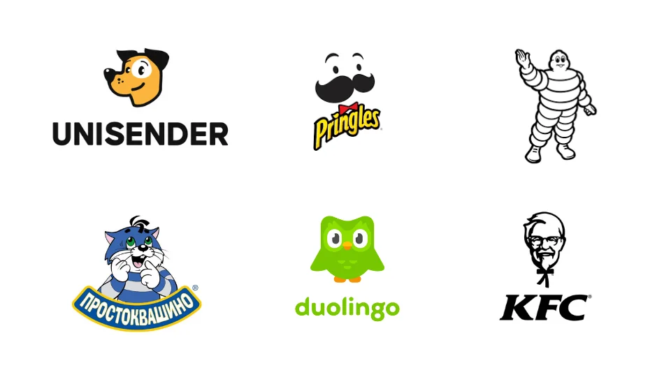 Некоторые компании интегрируют в логотипы маскотов — персонажей, которые становятся «лицом» марки и помогают выстраивать эмоциональную связь с аудиторией. Например, Гудбой Юни — главный герой брендовых коммуникаций сервиса Unisender. Платформа использует его и в качестве лого.