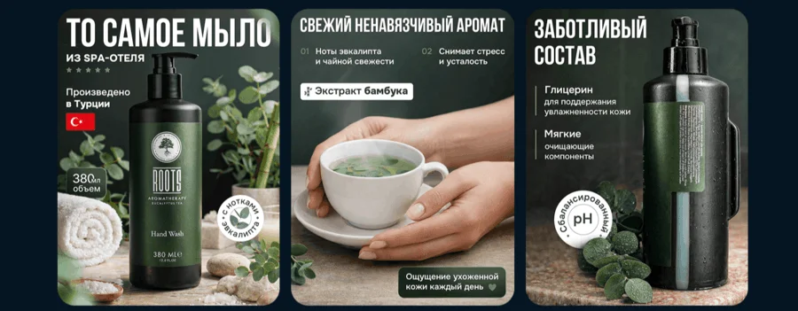 Фотографии. На них запечатлены реальные объекты, люди и ситуации, поэтому они вызывают больше доверия, чем рисунки. Фото часто применяют, когда нужно показать продукт, процесс или рабочую среду. Например, в карточках товаров на маркетплейсах и в публикациях в соцсетях брендов.