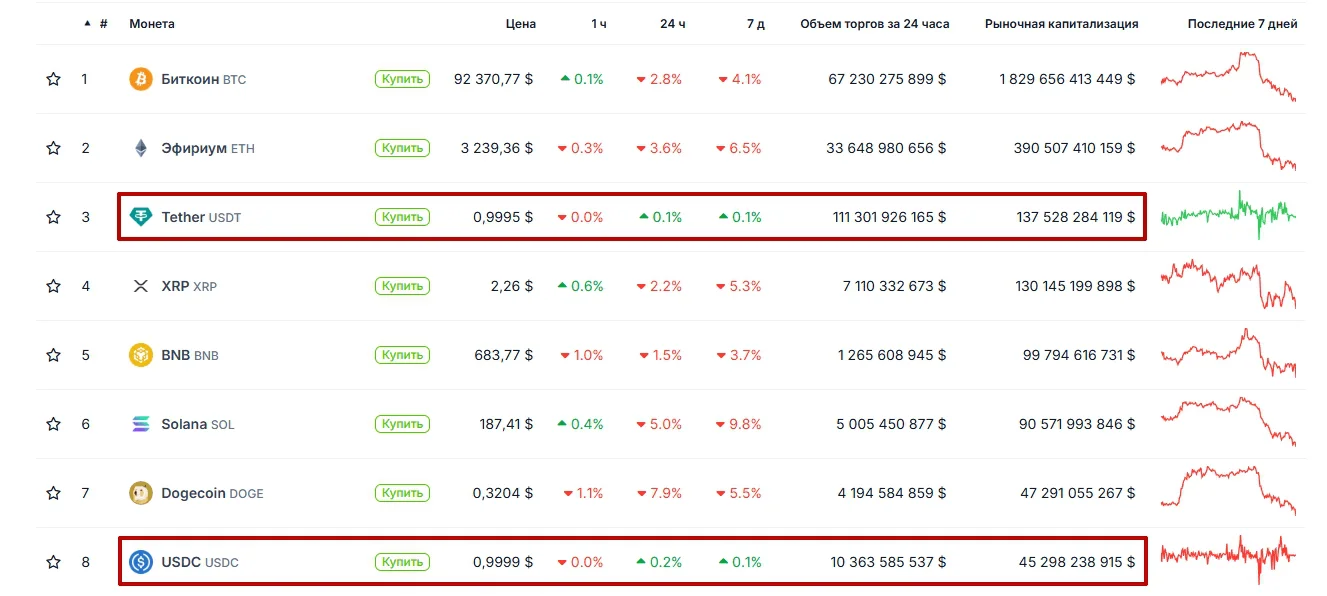 Курс стейблкоинов сильно не меняется. Отклонения от 1 доллара бывают, но обычно это сотая процента.