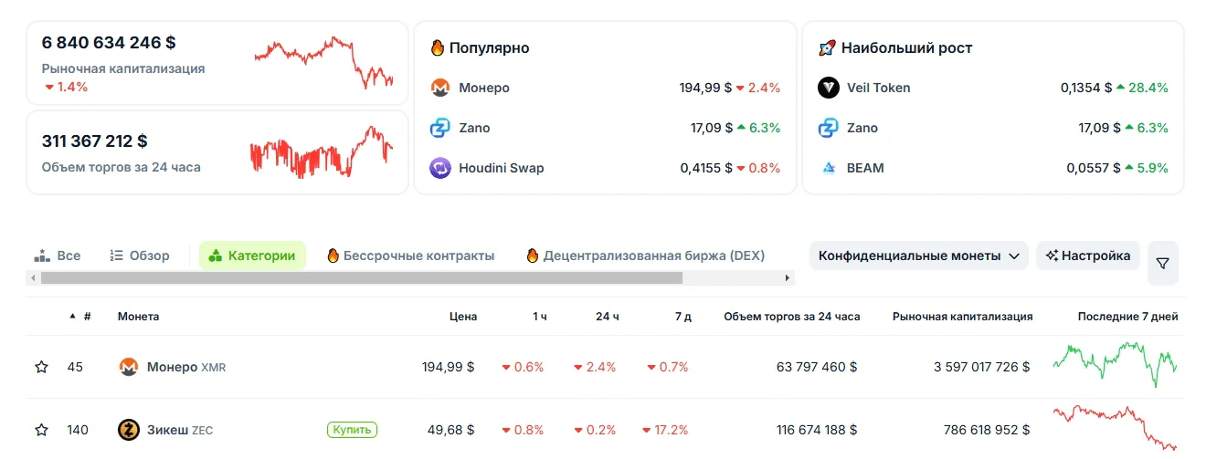 Самые известные приватные монеты — это Monero (XMR), Zcash (ZEC) и Dash (DASH). Сейчас они не пользуются большой популярностью, потому что большинство стран запретили биржам операции с анонимными монетами. Например, OKX и Binance уже удалили токены с бирж. Причина запрета — из-за высокой анонимности криптовалютой часто пользуются преступники. Например, для отмывания денег, торговли наркотиками или вымогательства.