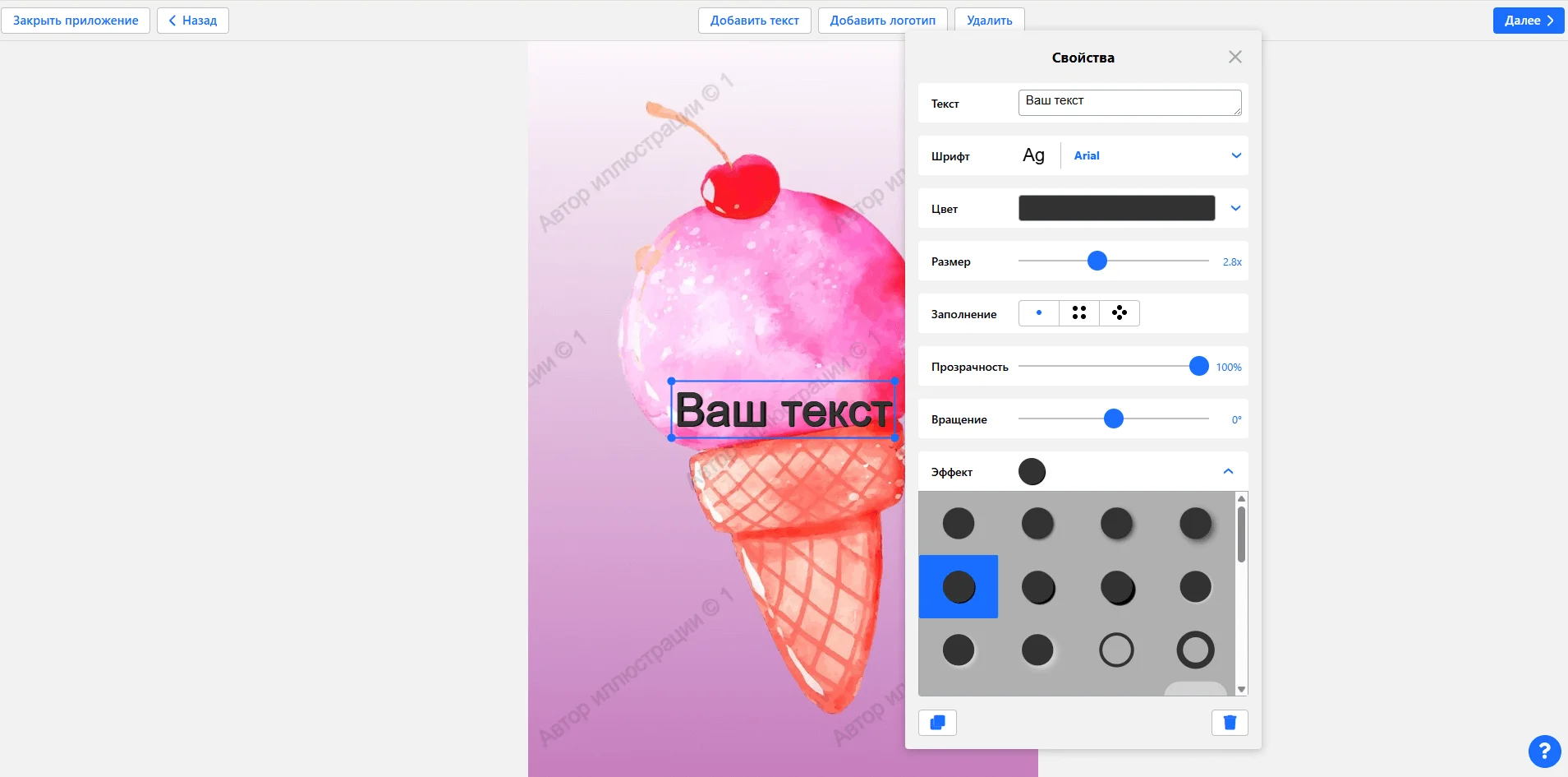 Можно настраивать метки по собственному усмотрению, добавлять различные шрифты, загружать собственные логотипы или использовать что-то из встроенной библиотеки. Есть 30-дневная пробная версия, но вотермарк самого сервиса будет на материалах в обязательном порядке.