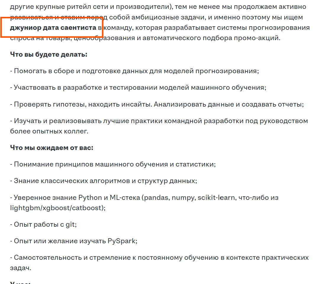 Высокая квалификация. Бизнес охотнее нанимает сеньоров, чем джуниоров. Это усиливают цифровизация и внедрение искусственного интеллекта. Требуется все больше сильных специалистов в аналитике данных, разработке, управлении проектами, кибербезопасности. Например, крупные российские компании вроде Яндекса, ВКонтакте или Сбера конкурируют за аналитиков данных, ML-инженеров, специалистов по нейросетям.