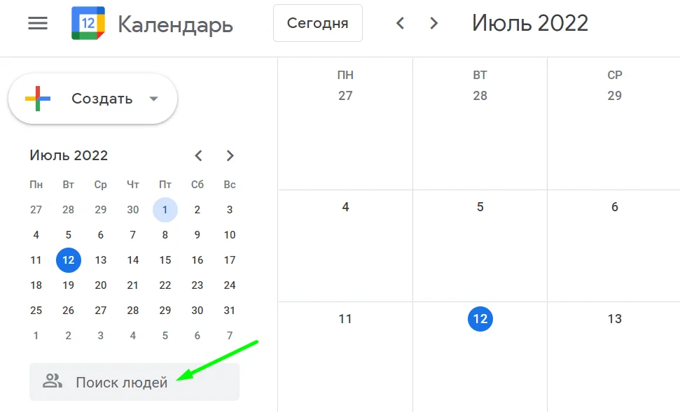На левой панели найдите строку «Поиск людей». Укажите email нужного человека — откроется его расписание. Важно, чтобы владелец расписания сделал его доступным для вас.