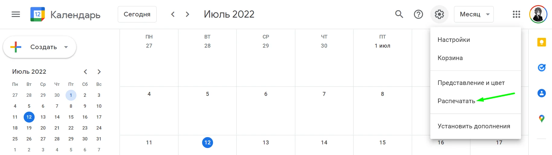 Любой созданный календарь можно распечатать. Это удобно, когда вы офлайн — наглядное расписание будет рядом, на рабочем месте.