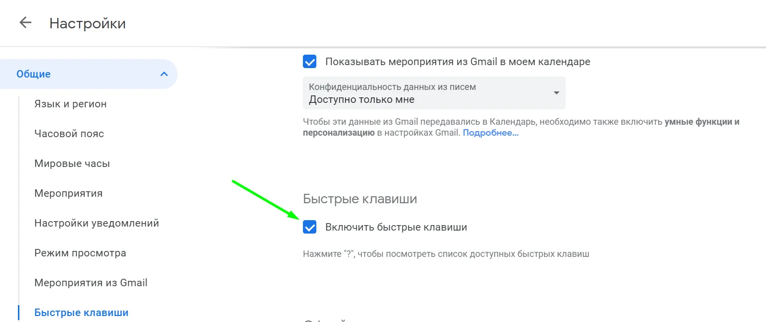 Для включения быстрых клавиш откройте настройки сервиса и поставьте галочку в соответствующем разделе.