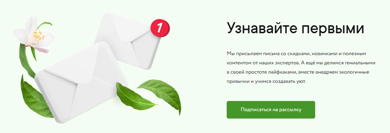 Подписаться на рассылку можно на сайте компании. Подписная страница сделана максимально просто: