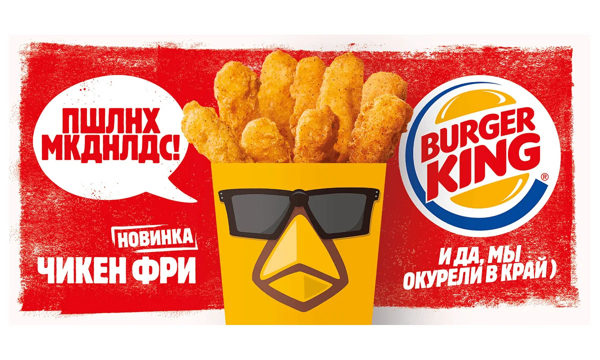 В 2017 году сеть быстрого питания Burger King выпустила баннеры с провокационным слоганом: «ПШЛНХ МКДНЛДС! И да, мы окурели в край». Такой заход был рассчитан на молодежную аудиторию и вызвал сильный негатив у более старших клиентов. На это и рассчитывала компания. Burger King сознательно отказался от взрослой аудитории, так как их стало слишком много в заведениях сети и они «вытесняли» основных клиентов — подростков и молодежь.