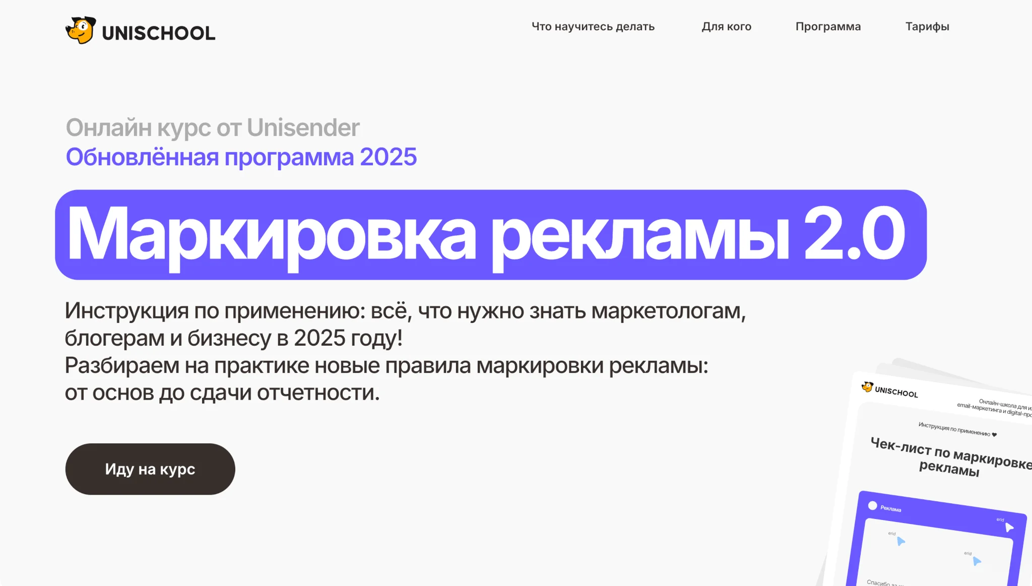 Кстати, в Unischool обновили онлайн-курс по маркировке рекламы. Он поможет разобраться на практике со всеми нюансами: от основ до сдачи отчетности. Полезно маркетологам, бизнесу, рекламным агентствам, блогерам.