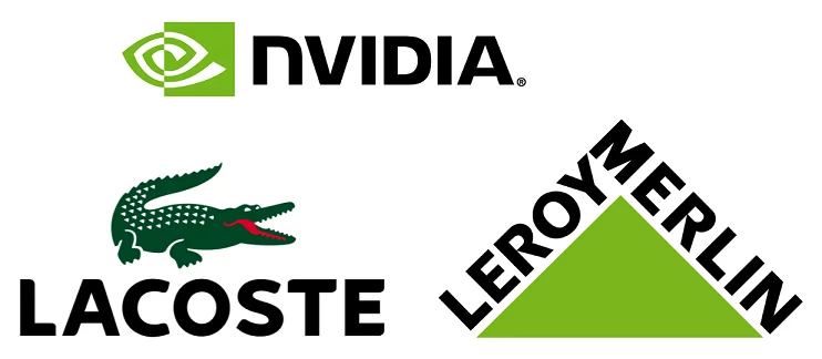 Зеленый цвет в логотипе NVIDIA с самого основания компании. Он символизирует рост, инновации и энергию, ассоциируется с мощью и передовыми технологиями в гейминге и вычислениях. Ключевой дизайнерский прием — стилизованный «глаз» кислотно-зеленого цвета, создающий образ футуристичного и мощного бренда.