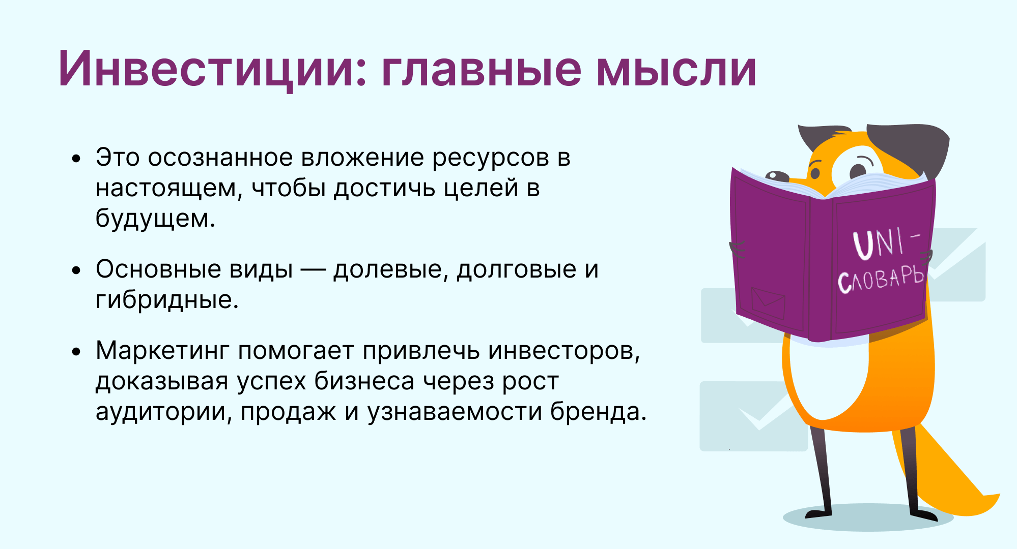 Маркетологу важно понимать основы инвестирования, чтобы лучше составлять бюджеты, обосновывать эффективность кампаний и участвовать в стратегическом планировании.