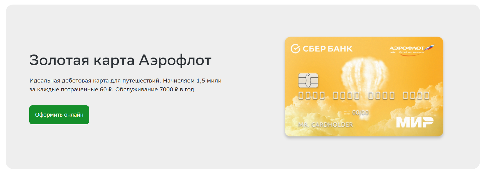 У «Сбера» есть дебетовая карта с милями для пассажиров «Аэрофлота»
