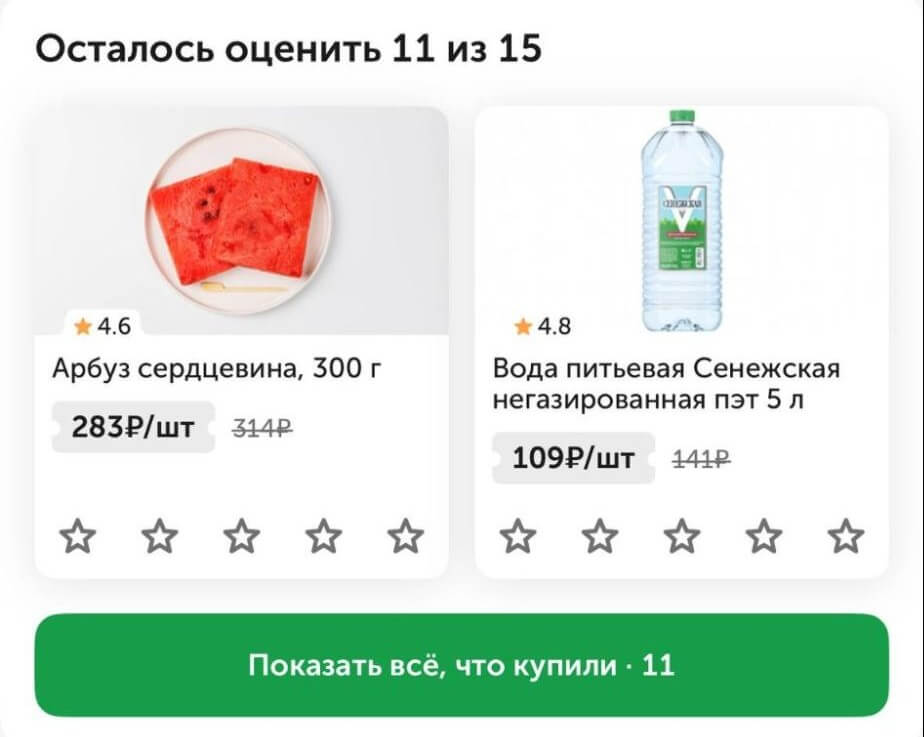 Возможность оценить приобретенные товары в приложении «ВкусВилла»