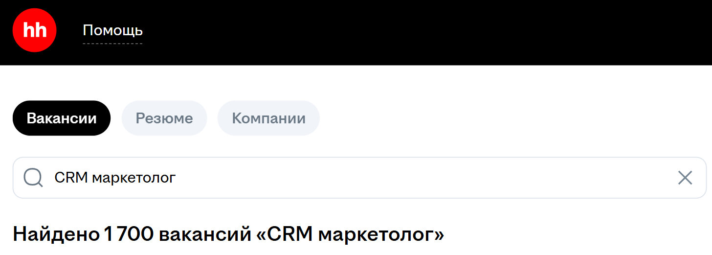 На hh.ru на момент написания статьи представлено 1700 предложений для CRM-маркетологов.