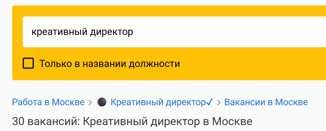 Сейчас на сайте «Карьерист.ру» можно найти 30 вакансий креативного директора в Москве, 8 — в Петербурге и практически ни одной — в других городах