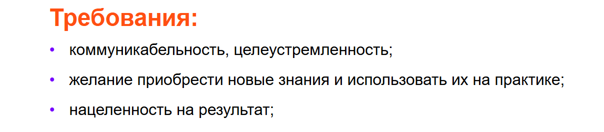 Обучаемость. За короткий срок придется выучить много новой информации о продукте, ассортименте, работе компании.