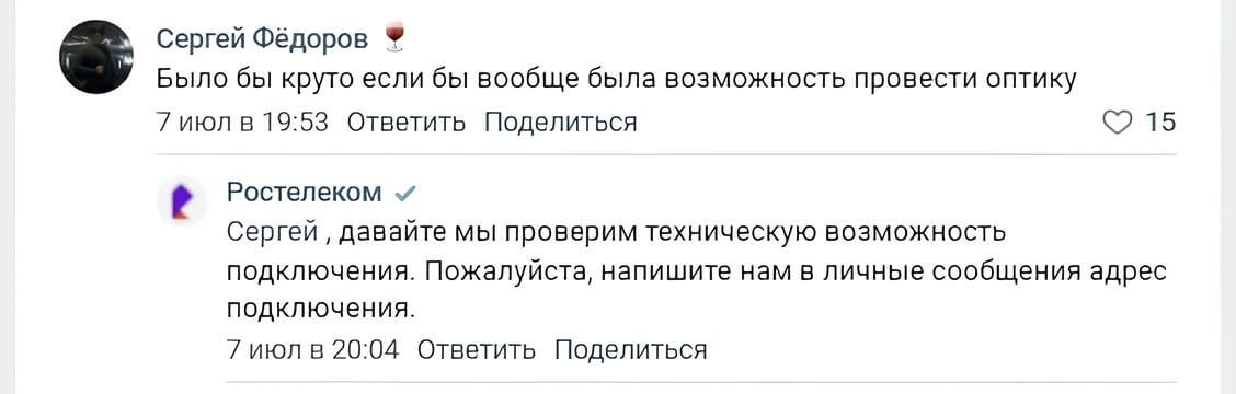 Компания «Ростелеком» общается с клиентами в комментариях и отвечает на вопросы