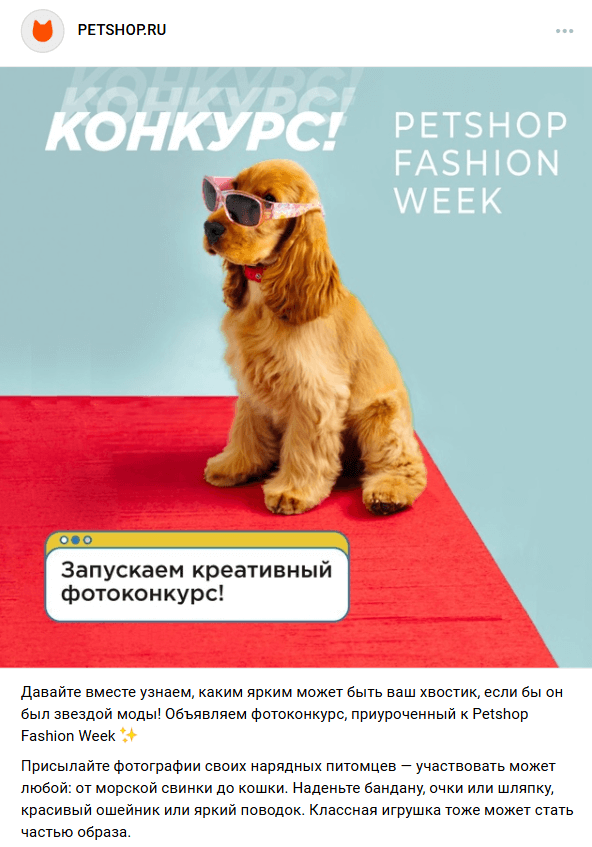 Магазин товаров для животных Petshop запустил фотоконкурс, чтобы стимулировать взаимодействие с брендом