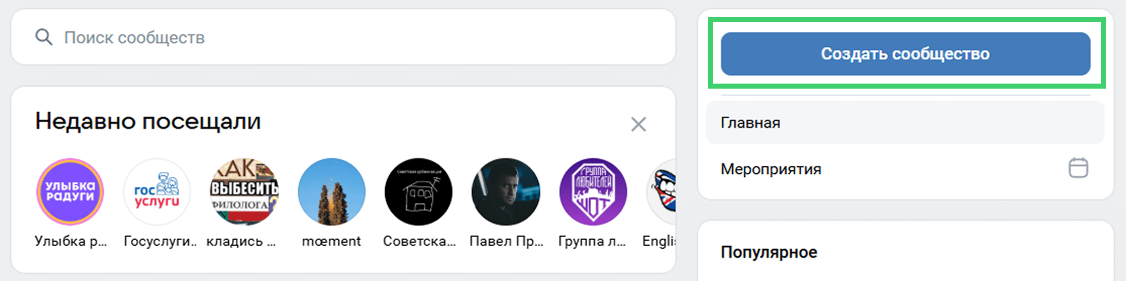 Зайдите на сайт, откройте в меню слева раздел «Сообщества», нажмите на кнопку «Создать сообщество».