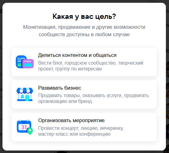 Выберите тип сообщества