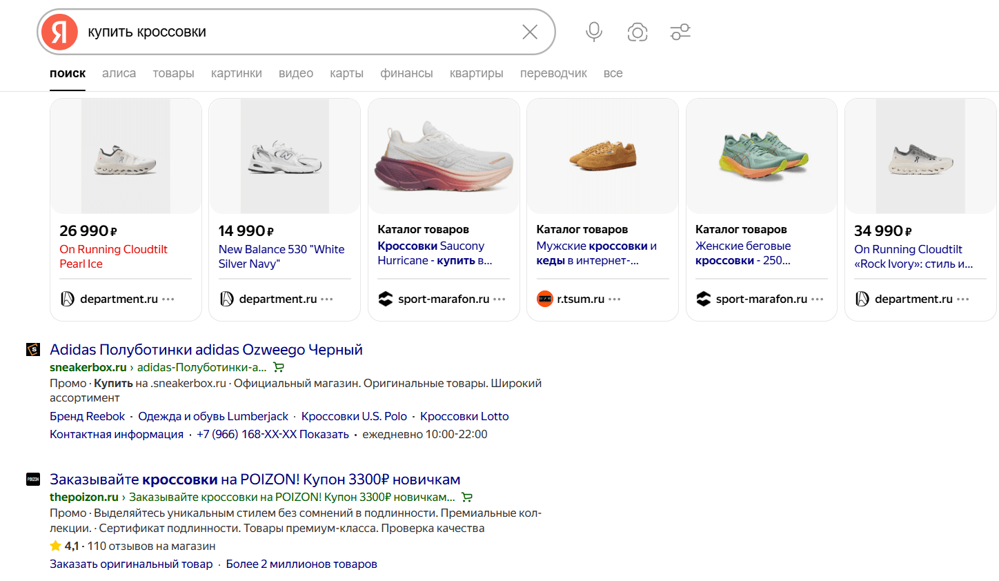 Во втором — маркетологи настраивают показ рекламных объявлений под конкретные интернет-запросы пользователей. Большое значение имеет рейтинг объявления. Он зависит от ставки и качества баннера. Реклама с более высоким рейтингом поднимается выше в выдаче.