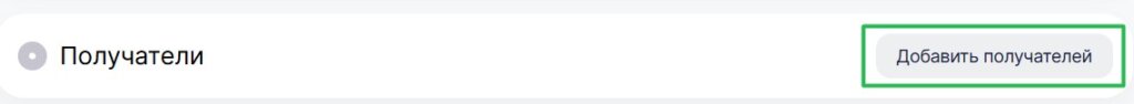 Далее заполните поле «Получатели», нажав на кнопку «Добавить получателей».