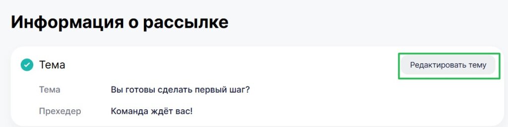 Тема письма и прехедер указываются в конструкторе на этапе оформления письма. Нажмите кнопку «Продолжить», чтобы перейти к рассылке.
