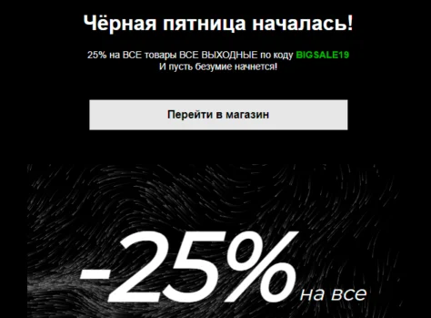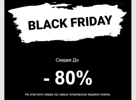 Email-шаблон «Чёрная пятница — распродажа года» создан для рассылки о масштабной распродаже в ноябре. Макет выполнен в контрастных красно-чёрных цветах. Для примера в шаблоне письма представлен интернет-магазин техники и гаджетов. Но такая рассылка будет органично выглядеть и с другими товарами и даже услугами — достаточно просто заменить фотографии и описания в блоках.