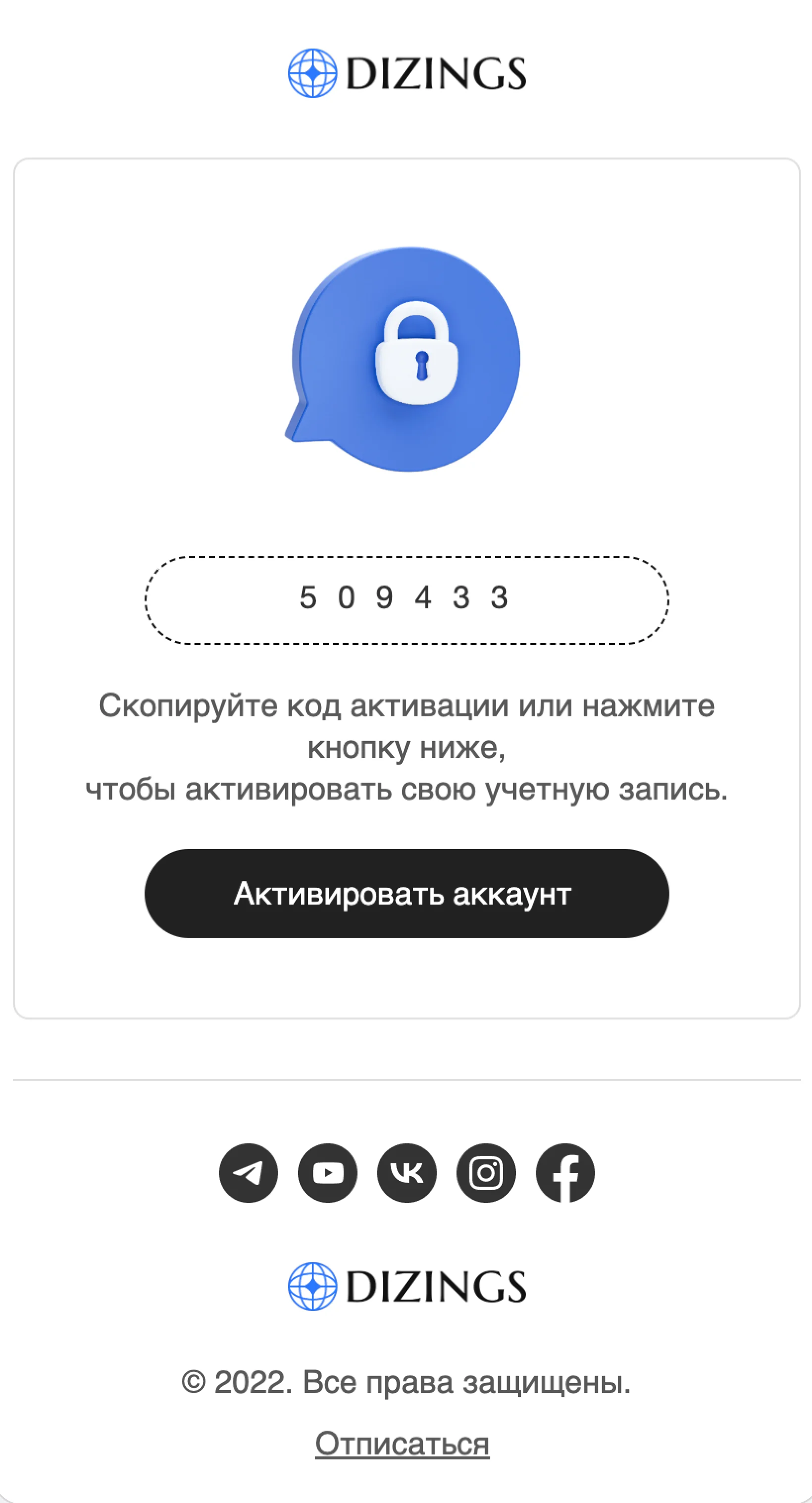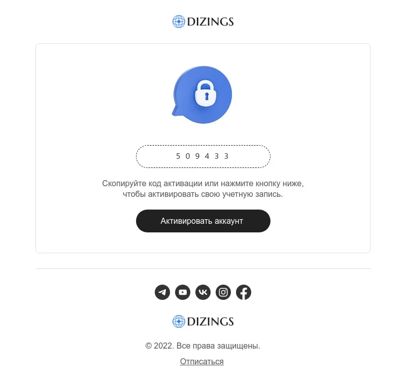Шаблон письма: Код активации