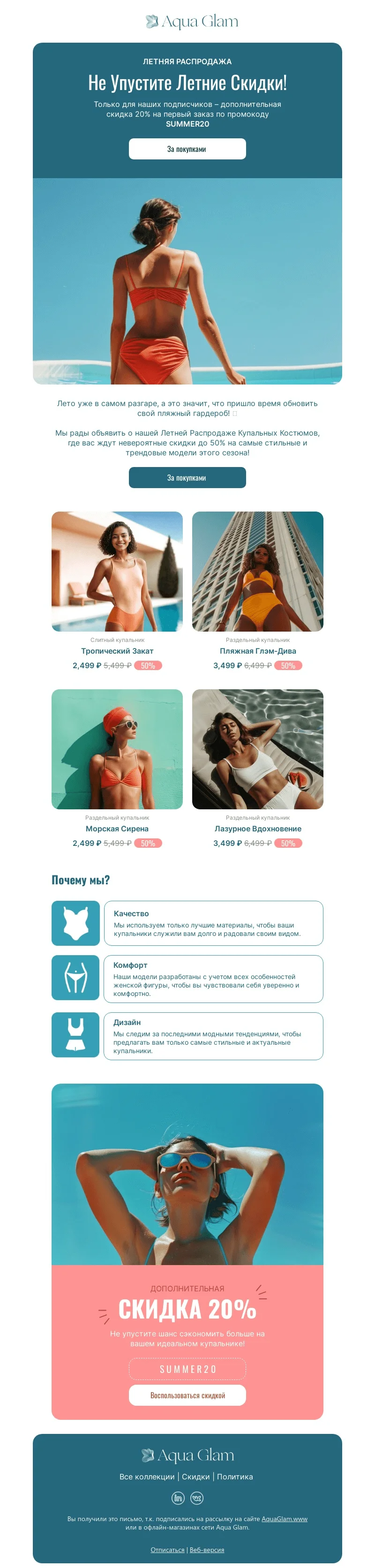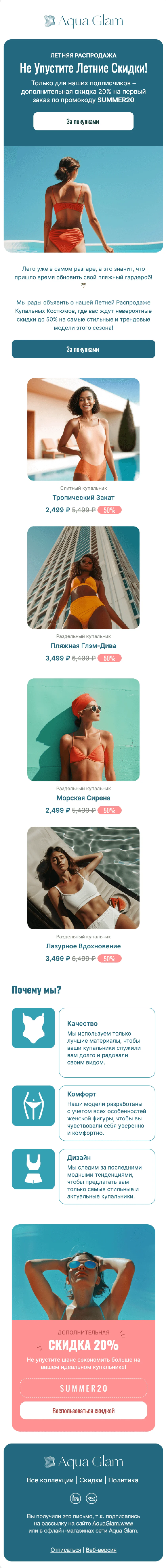 Шаблон письма: Летние скидки на стильные купальники