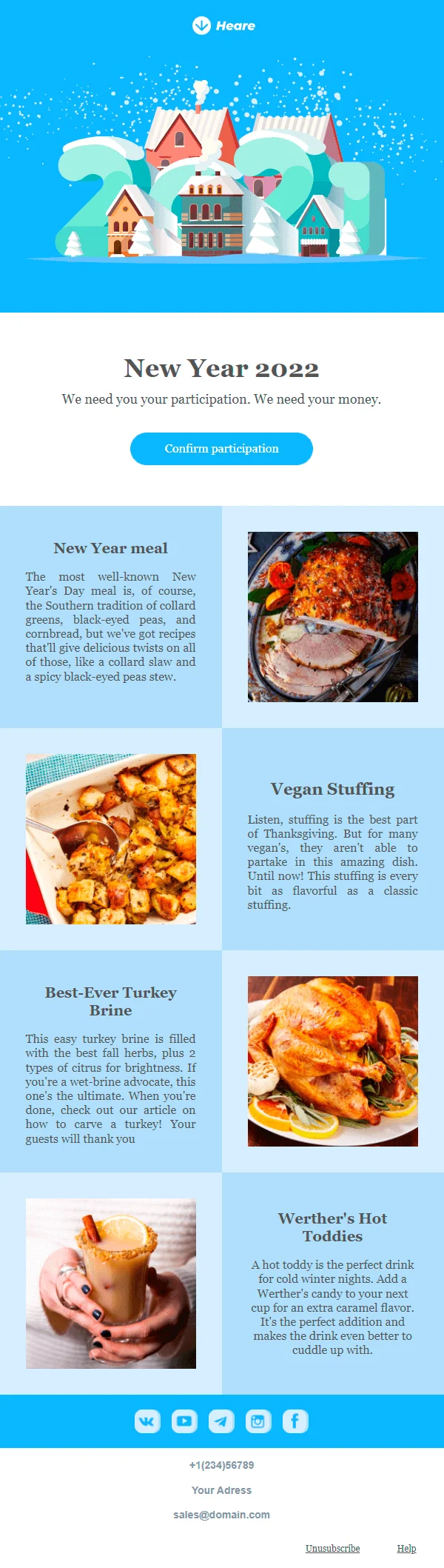 Email-шаблон «Мы нуждаемся в вашей помощи в канун Нового года» предназначен для некоммерческих и благотворительных организаций. В преддверии праздников, когда люди заняты собственными заботами, НКО часто испытывают трудности с регулярными пожертвованиями. Используйте этот шаблон письма, чтобы отправить фандрайзинговую рассылку: поздравьте подписчиков с праздниками и напомните, что их помощь по-прежнему очень важна для вас.