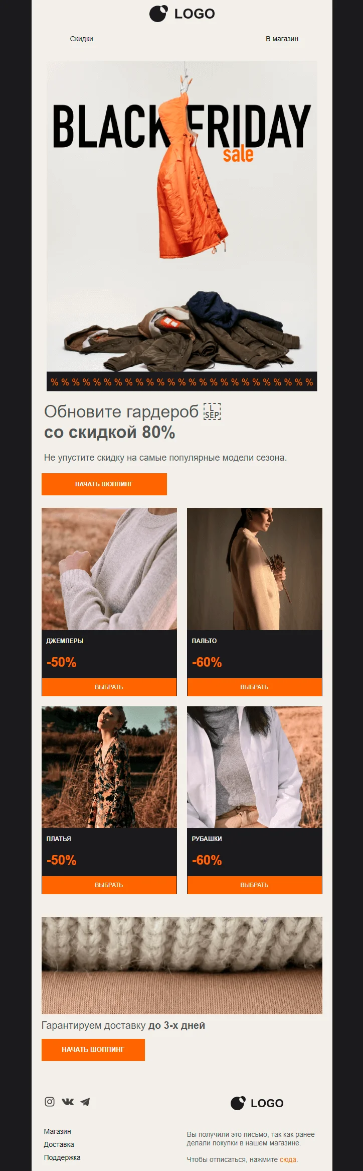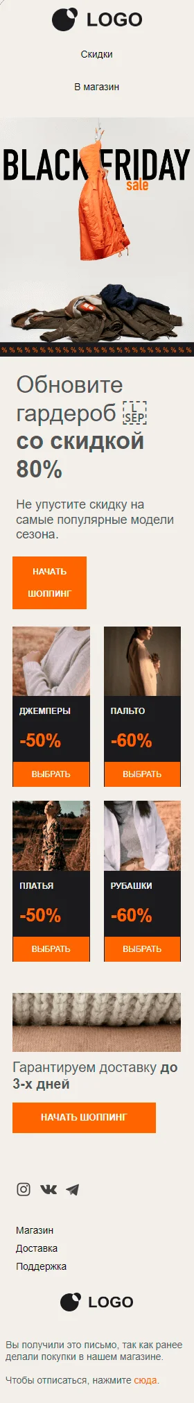 Шаблон письма: Обновите гардероб в Чёрную пятницу