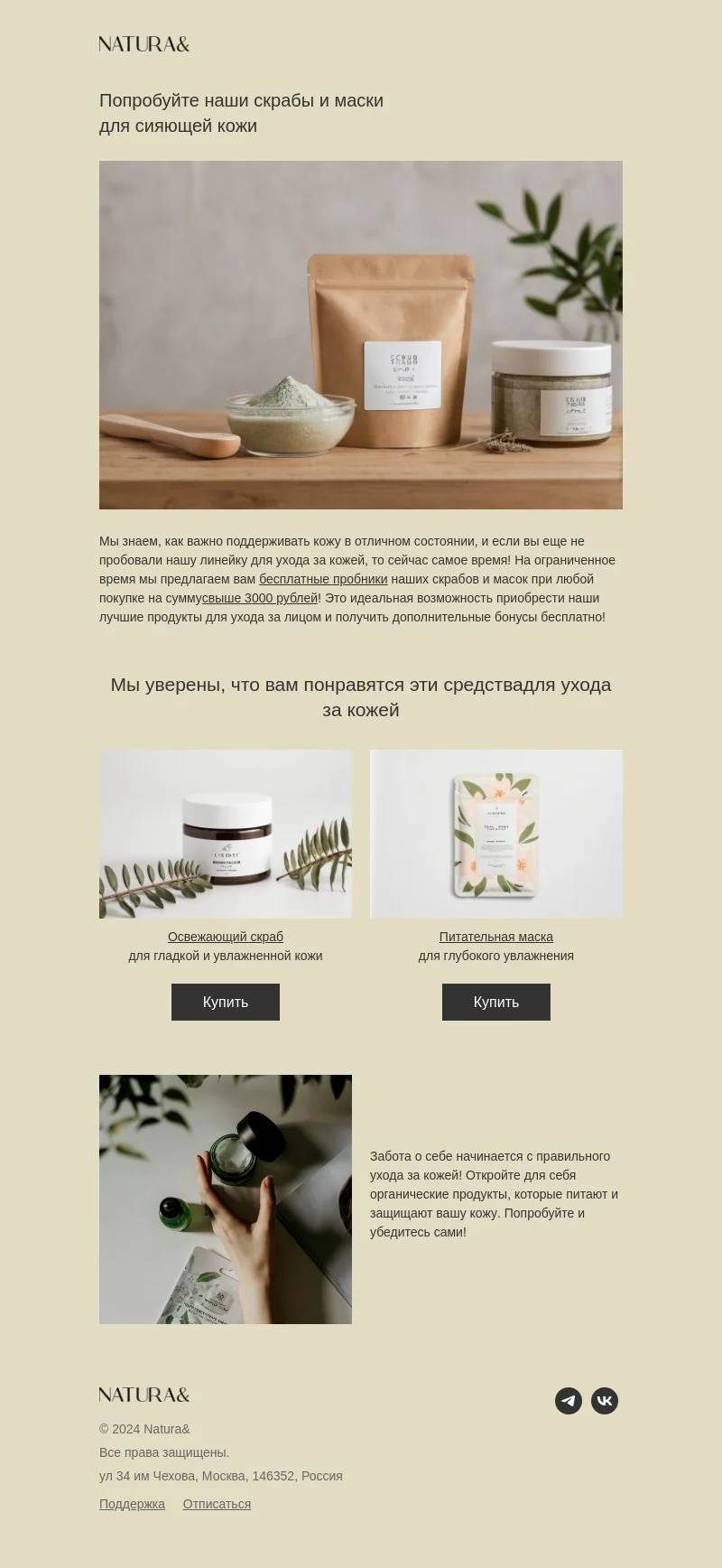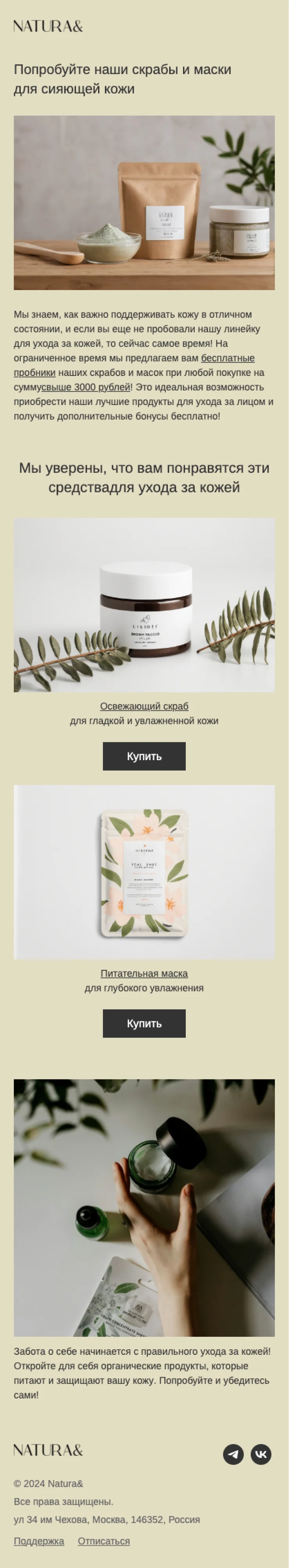 Шаблон письма: Попробуйте наши скрабы и маски для сияющей кожи