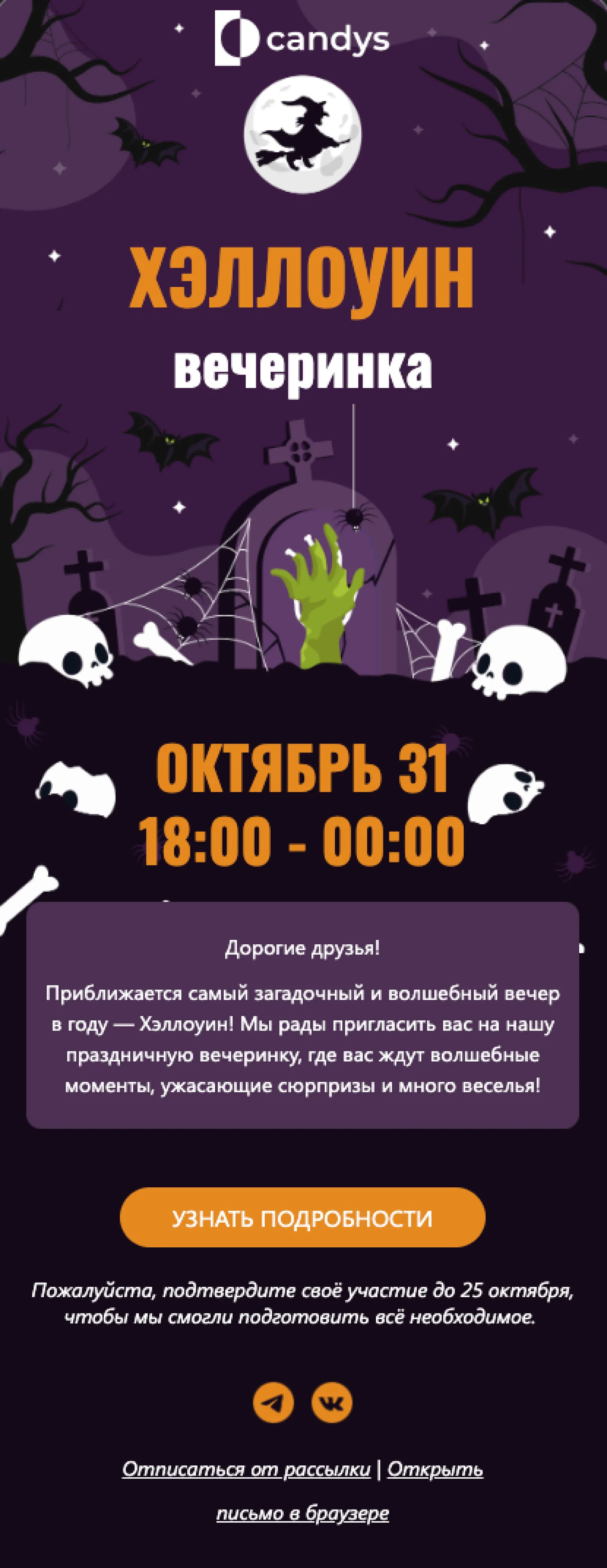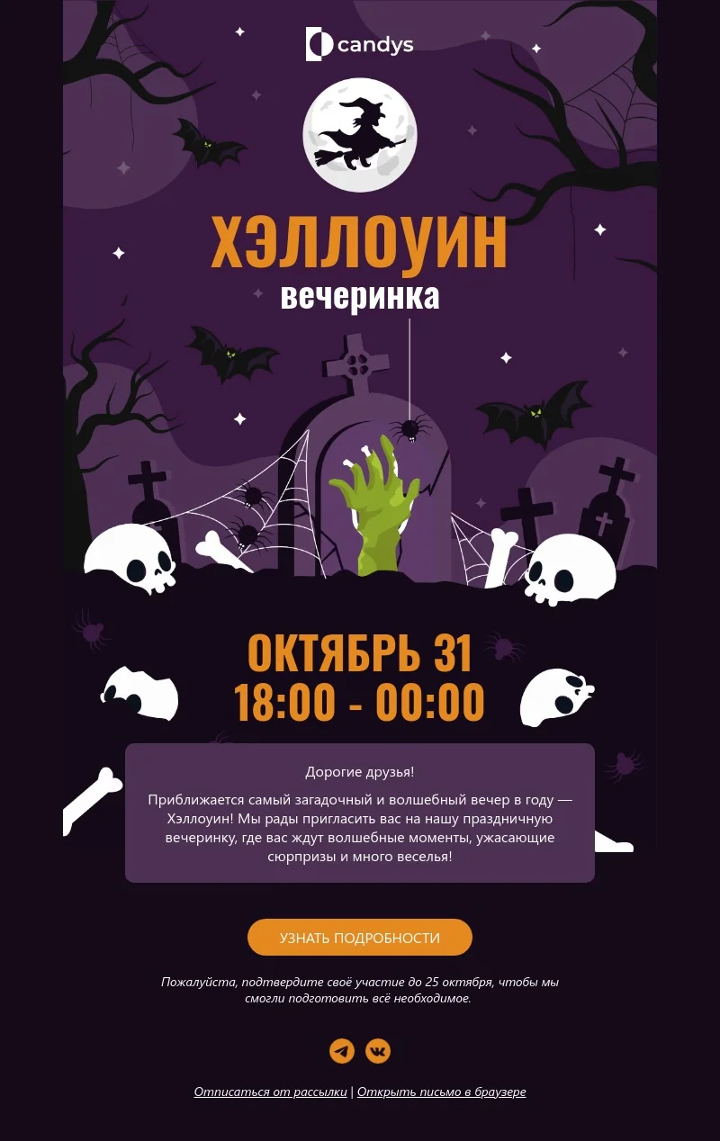 Шаблон письма: Приглашаем на незабываемую Хэллоуин-вечеринку
