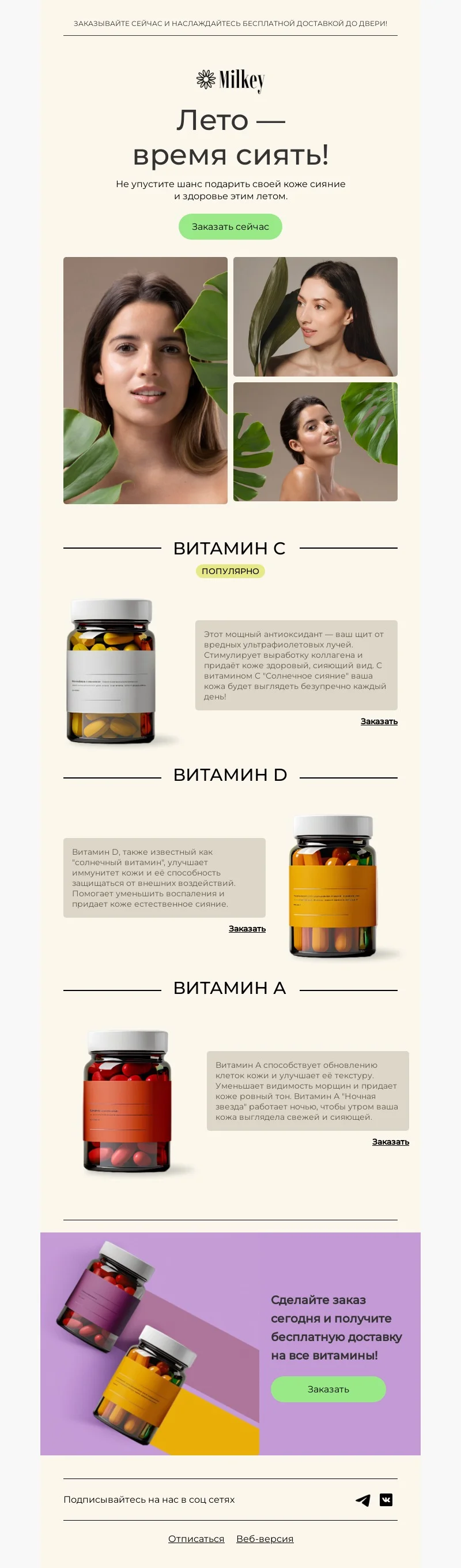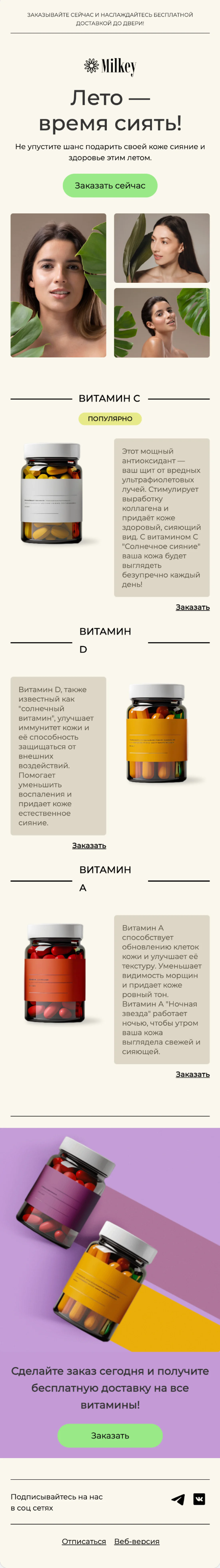 Шаблон письма: Секрет сияющей кожи этим летом