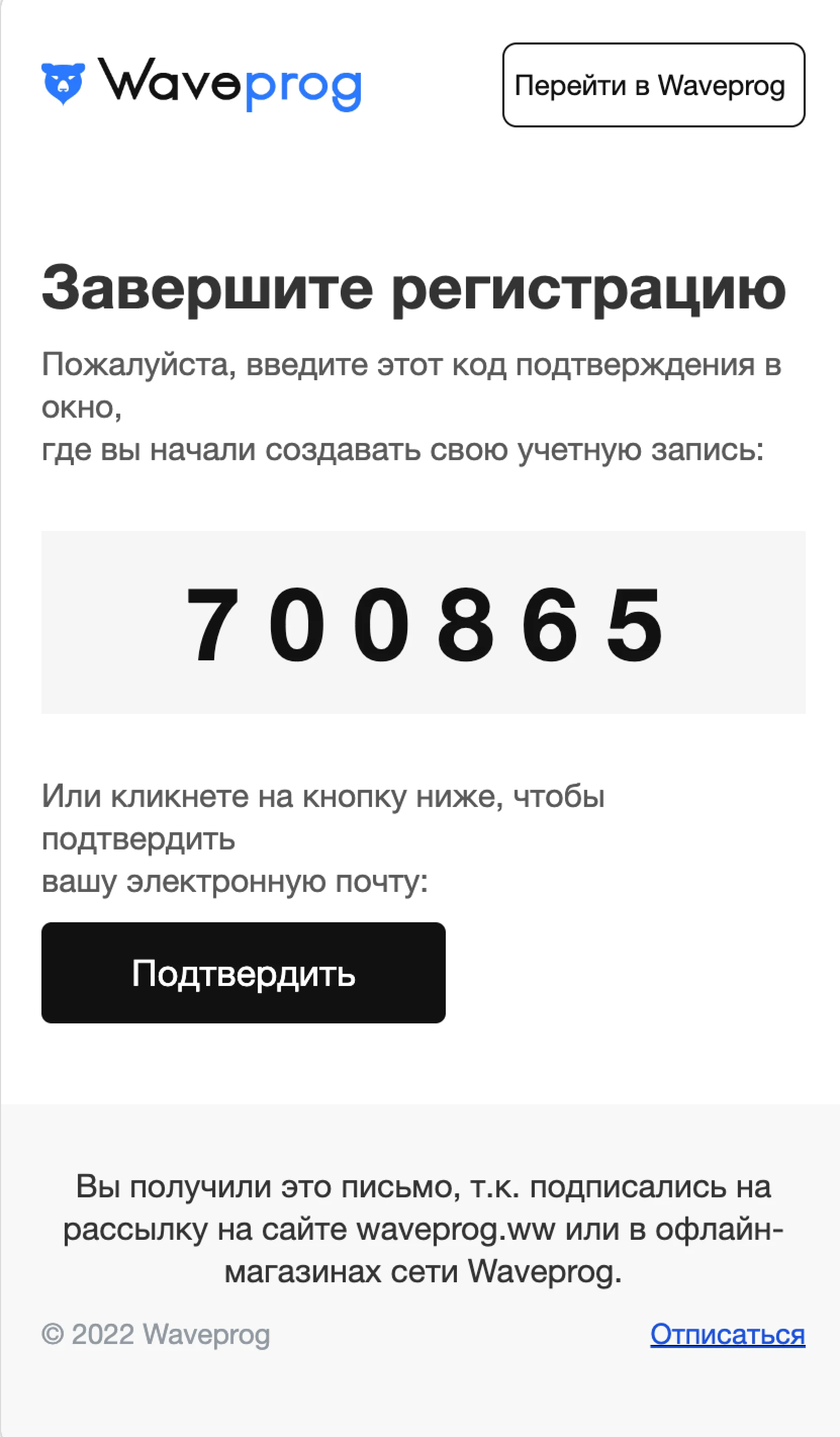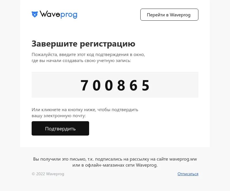 Шаблон письма: Завершите регистрацию, введите код