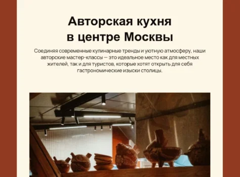 - блоки для текстового и визуального контента — описаний и фотографий блюд, выдержек из меню;